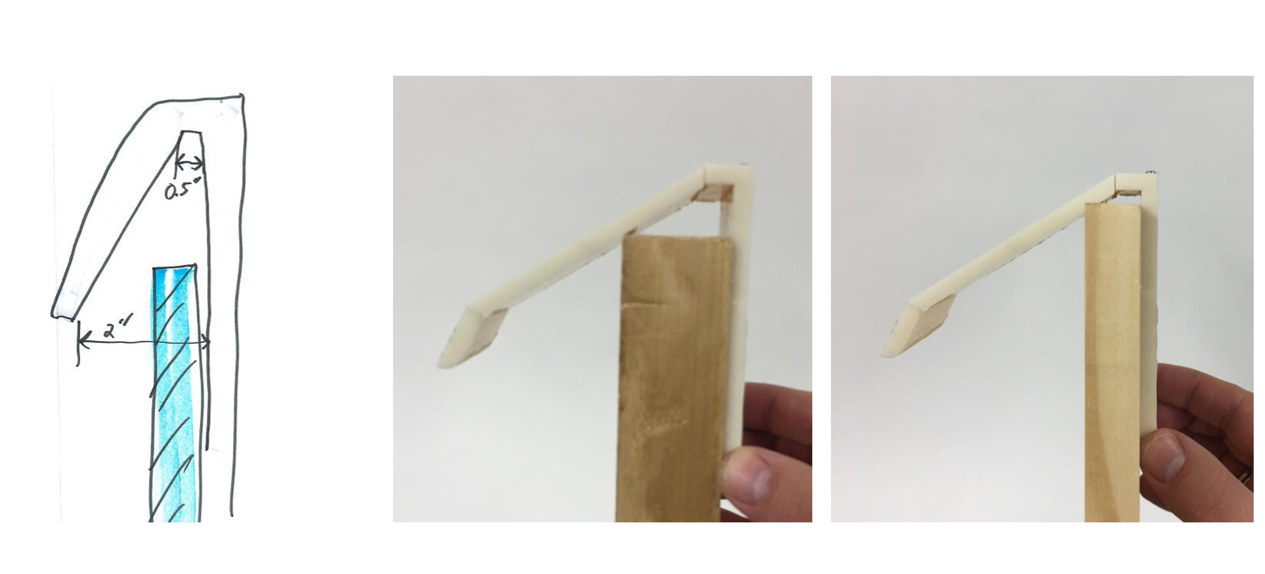 The client loved the final project direction and they expressed there was lots of excitement in buyer meetings with how the product worked. The weight of the caddy resting on top of a wall would swing the arms to grip on the wall. Below are some of the development steps that lead to this design.